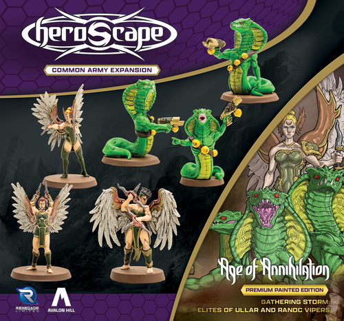 This expansion includes two 3-figure Common Squads. The highly detailed, pre-assembled miniatures and 2 Army Cards are fully compatible with all Heroscape Battle Boxes, Master Sets, and Expansions. Ullar’s elite Kyrie warriors strike with deadly precision, coordinating their attacks to overwhelm foes. When an Elite of Ullar is wounded, other unengaged Kyrie can swiftly move to respond, keeping your army in relentless motion. On the battlefield, Ranoc Vipers strike with hypnotic attacks that weaken enemies, move effortlessly across water, and dodge ranged assaults with uncanny agility.